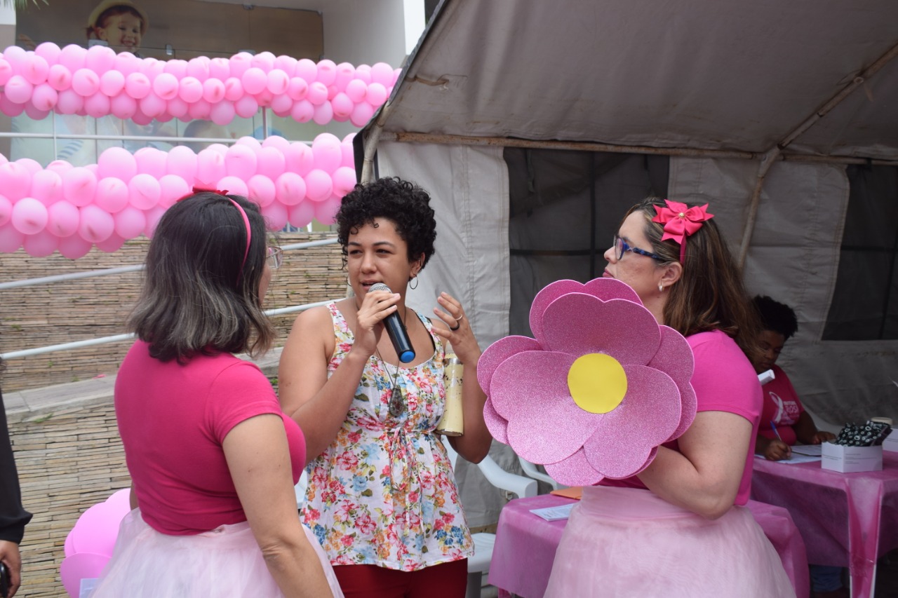 Marcando a abertura da campanha Outubro Rosa em Garanhuns, a Secretaria Municipal de Saúde promoveu, nesta terça-feira (01), uma ação de promoção à saúde no Centro de Especialidades em Saúde da Mulher e da Criança (Cesmuc). A campanha segue durante todo o mês, e busca conscientizar diretamente a população sobre a importância da prevenção e diagnóstico precoce do câncer de mama e do colo do útero. A ação de hoje contou com a presença do prefeito de Garanhuns, Izaías Régis, do vice-prefeito Haroldo.