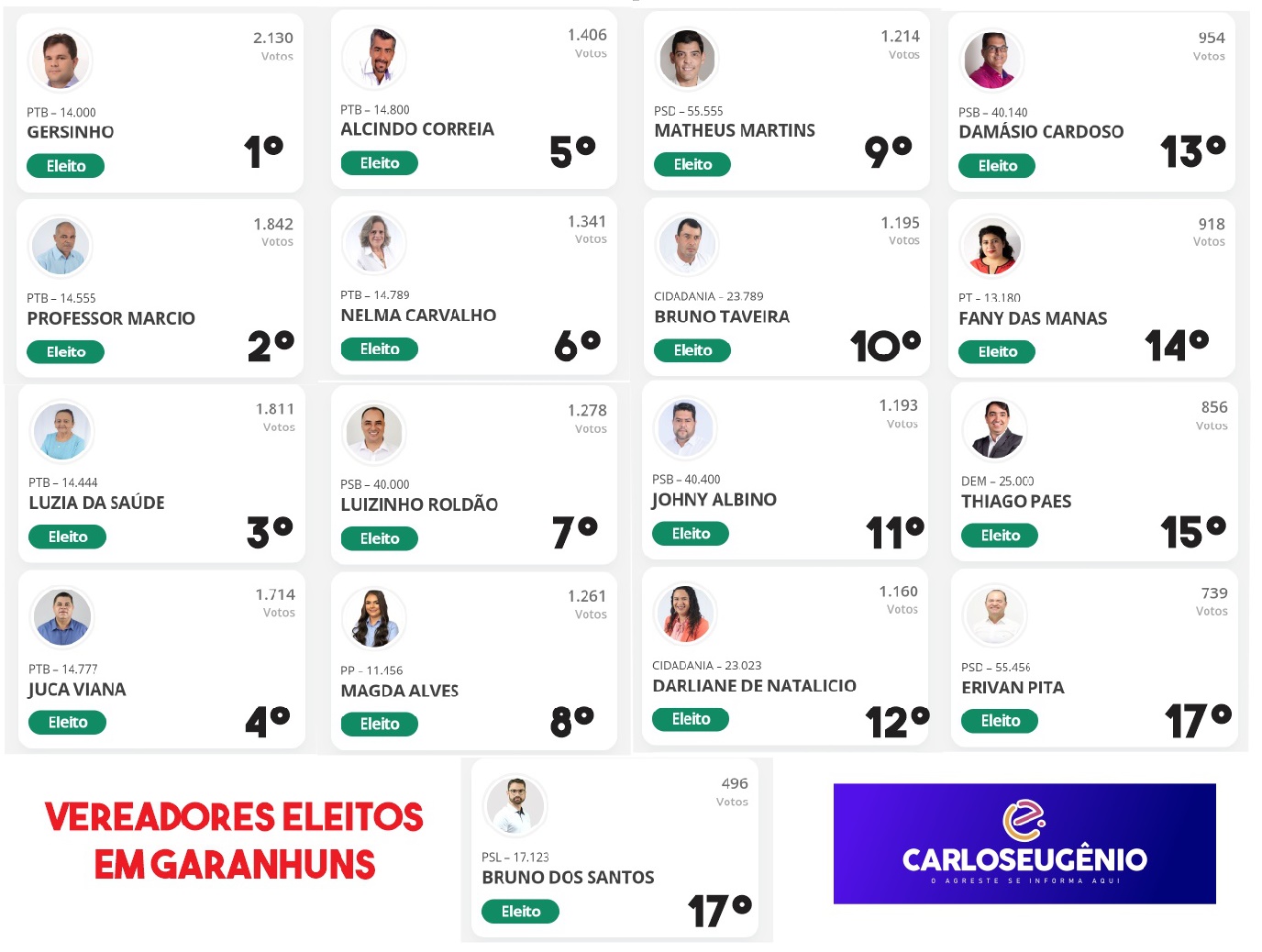 Embora os resultados ainda não sejam oficiais, porque o site do TSE continua com problemas, os boletins de urna confirmam a vitória de Douglas, que obteve 3.983 votos, contra 3.287 do adversário.