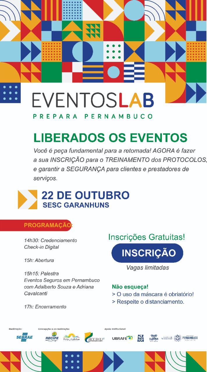 O Sebrae promove em Garanhuns, no Sesc, uma capacitação voltada para organizadores de eventos, cerimonialistas, promotores de festas, receptivos, buffets, decoradores, fornecedores de alimentos e bebidas, funcionários que atuam nos espaços de eventos e nos eventos públicos abertos.