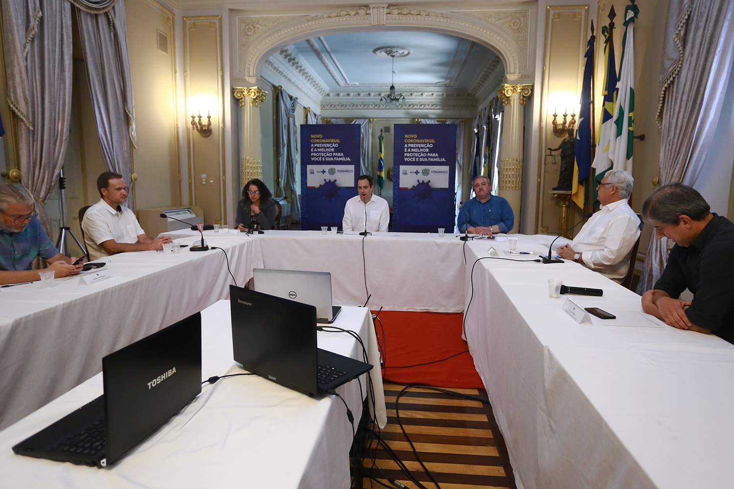 O governador Paulo Câmara comandou, na manhã deste domingo (05.04), uma reunião com parte da sua equipe de secretários no Palácio do Campo das Princesas e com os demais integrantes do primeiro escalão participando por videoconferência. O objetivo foi analisar o impacto da pandemia do novo coronavírus no Estado, pontuando as ações de enfrentamento implementadas e discutindo o planejamento para os próximos dias. Hoje, Pernambuco contabilizou mais 25 casos confirmados e sete mortes. Ao todo, já são 201 casos confirmados e 21 mortes registradas.